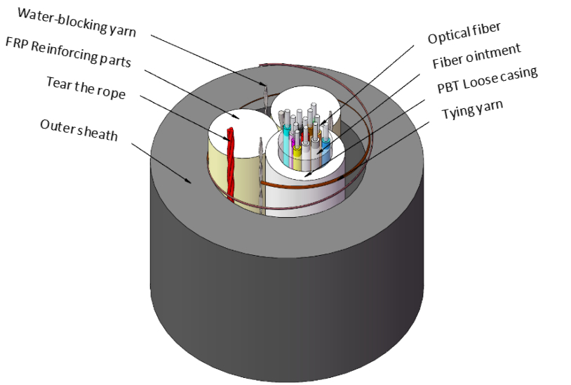 3 Twee FRP-versterkingscomponenten bieden een uitstekende trekprestatie, terwijl de optische kabel ook een uitstekende temperatuurprestatie heeft.