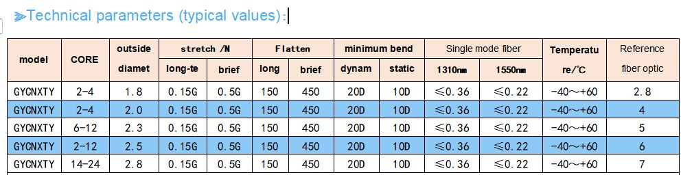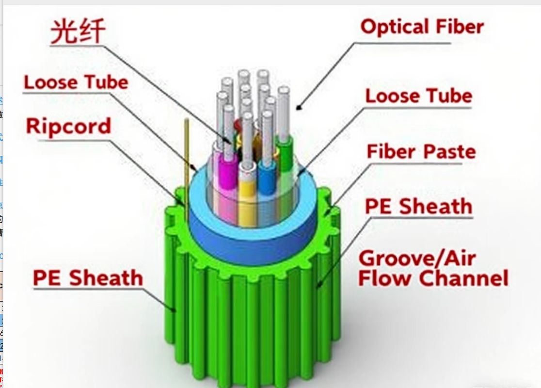 Buitenluchtgeblazen optische kabel voor communicatie zonder versterkte componenten, centraal bundelbuistype, polyethyleen met hoge dichtheid mantel. De structuur van de optische kabel is om single-mode of multi-mode optische vezels in te bedden in een met waterdichte verbinding gevulde losse buis van hoog modulus plastic, de losse buis in de middenpositie te plaatsen, een scheurkoord in te bedden en de polyethyleen mantel met hoge dichtheid te extruderen om de kabel te vormen.